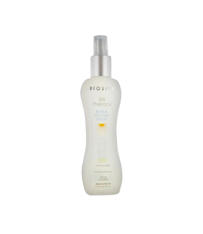Biosilk Silk Therapy Beach Texture Spray 167ml is een stylingspray voor het creëren vaan beach kapsels. Door de toevoeging van natuurlijke zijde, vitaminen, kruiden en zeezout krijgt je haar de ultieme "beachlook". Wie wil er nou niet de stevigheid en het gevoel dat je krijgt na een uur op het strand zonder dat je haar droog aanvoelt? Biosilk Silk Therapy Beach Texture Spray zorgt voor natuurlijk ogende beachy waves met volume, body, textuur en beweging. De formule is geschikt voor alle haartypes en vrij van parabenen. Met gebalanceerde pH-waarde van 3,0.