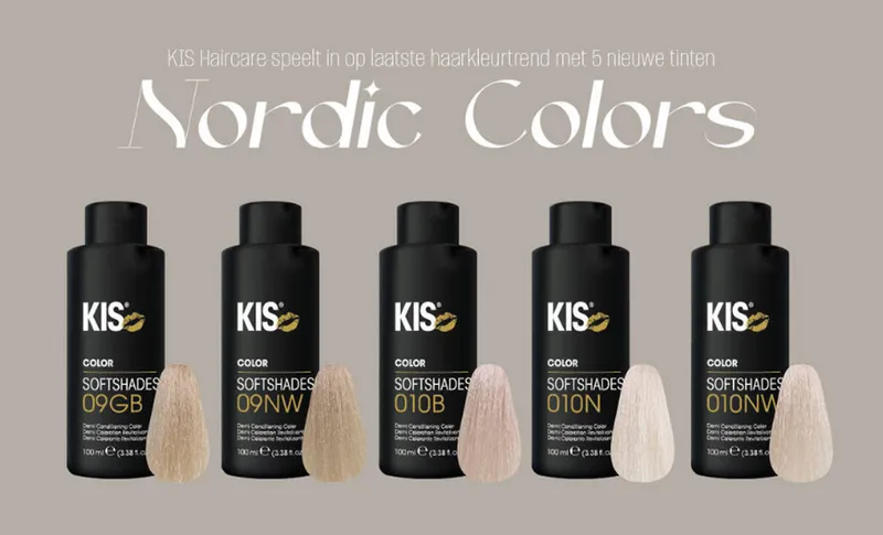 Nieuw: KIS SoftShades Nordic Colors KIS Haircare speelt in op de laatste haarkleurtrends met 5 nieuwe Nordic blondtinten in het SoftShades assortiment. Go blonde, blonder, blondest!