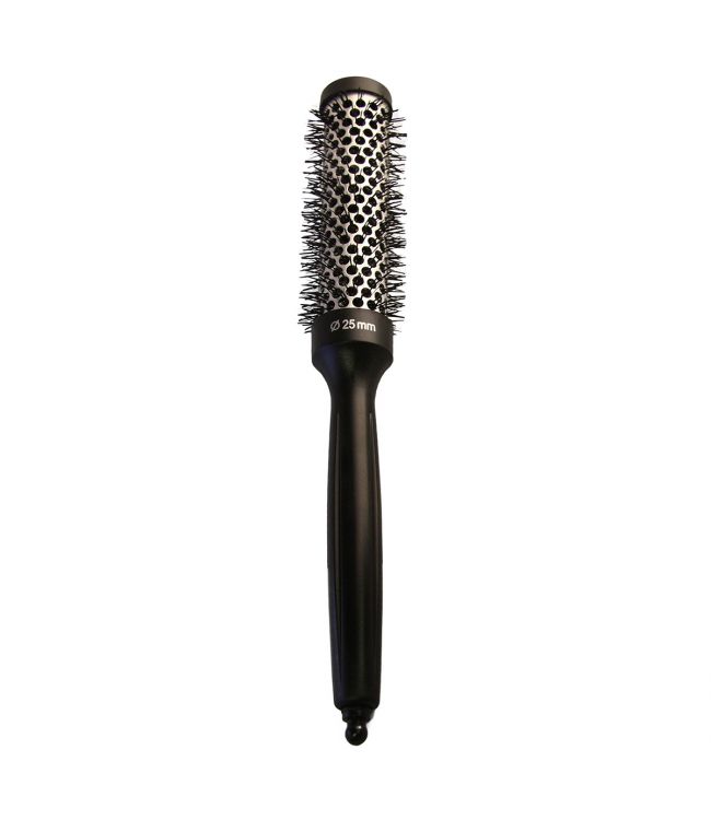 Bravehead Föhnborstel 25 mm is een thermische en anti-statische föhnborstel. Deze ronde borstel met een diameter van 25 milimeter heeft een aluminum huls en nylon pennen. Aan de onderkant van het handvat zit een kunstof pin die eruit gehaald kan worden. Zet deze pin andersom in het uieinde van het handvat en verdeel het haar gemakkelijk in meerdere plukken.