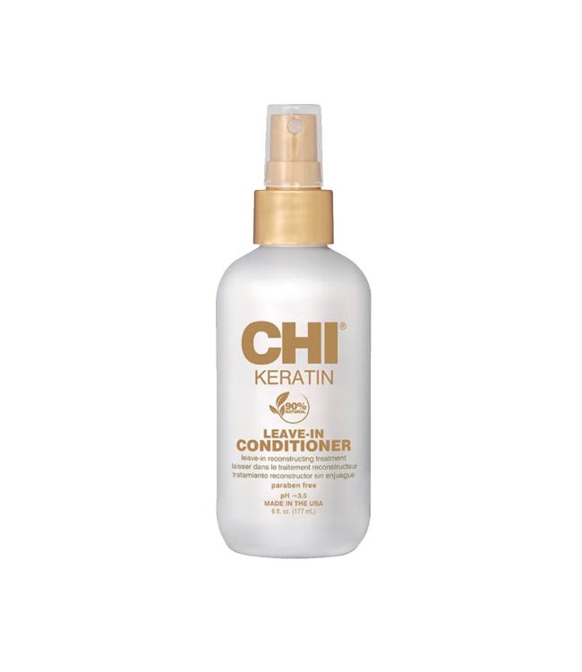Chi Keratin Leave-In Conditioner 177ml is een gewichtloze leave-in conditioner om beschadigd haar te herstellen en versterken met een krachtige dosis keratine. Door de combinatie van Keratine, jojoba-olie en arganolie verbetert deze conditioner de elasticiteit van je haar waardoor het minder snel breekt. Meer Lezen