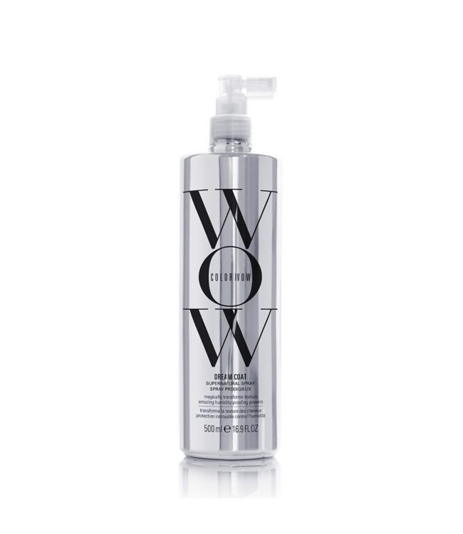 Color Wow Dream Coat Supernatural Spray 500ml is een beschermende anti-pluis spray. De Dream Coat Supernatural Spray werkt als een mini Keratine Treatment en transformeert alle haartypes naar glanzend, glad en pluisvrij. Color Wow maakt gebruik van de nieuwste technologieën waarmee er een laagje rondom het haar wordt gelegd. Dit beschermt het haar tegen externe factoren zoals luchtvochtigheid. Het haar blijft gedurende de hele dag vrij van pluis. Daarnaast verzwaart de spray het haar niet. Het pluisvrije effect blijft tot wel 3 wasbeurten zichtbaar! Met Color Wow Dream Coat hoef je niet langer bang te zijn voor een pluizige coupe bij regenachtig weer of op een warm feestje.