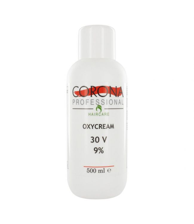 Corona Oxycreme 9% 500ml is een waterstofperoxide op crème basis. De crème is zeer geschikt voor wanneer je lang kleurbehoud en subtiel gekleurde lokken wenst. Deze enorm goede crème kun je toepassen bij alle verf en blondeer behandelingen. Bij het gebruiken van deze crème wordt het haar op een prachtige manier ontkleurd. Deze Corona ontwikkelaar heeft een percentage van 9% of ook genoemd 30 VOL. en is specifiek gemaakt om optimaal te werken met alle Corona haarverf. Na gebruik van deze crème wordt het haar in een handomdraai tot 5/6 tinten lichter! Verder is deze crème ook verkrijgbaar in een literfles.