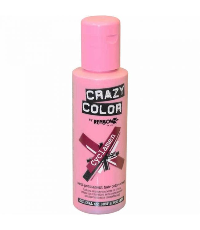 Crazy Color is de orginele 'punk rock' haarkleuring. Mede hierdoor is deze haarkleuring al jaren een van de populairste producten in zijn soort. De semi-permanente haarverf van Crazy Color bestaat uit een grote collectie van levendige en unieke haarkleuren, die onderling mengbaar zijn voor iedere gewenste look. Crazy Color Cyclamen is een dieproze haarverf, geïnspireerd op de bloemen van de Cyclaam. Cyclamen zorgt voor intens rijke, levendig roze haarkleuren. Meer Lezen