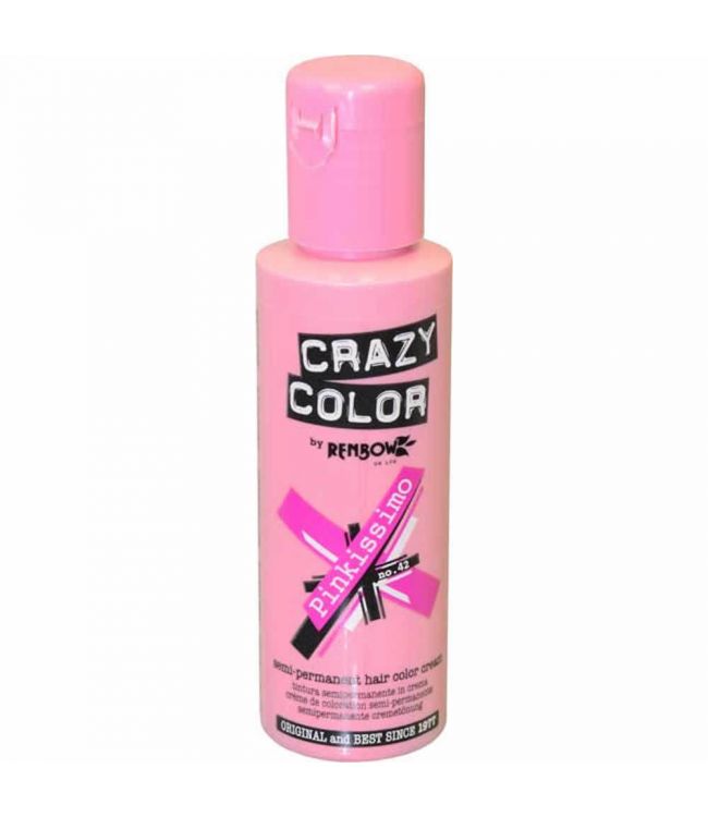 Crazy Color Pinkissimo is de best-selling roze haarverf van Crazy Color. De warmroze kleur is ontwikkeld om perfect roze haar te creëren. Voor het beste resultaat breng je deze kleur aan op opgelicht haar (niveau 9 of 10). Pinkissimo is ook geschikt voor lichtbruin haar (niveau 8), maar de resultaten zullen dan minder intens zijn.