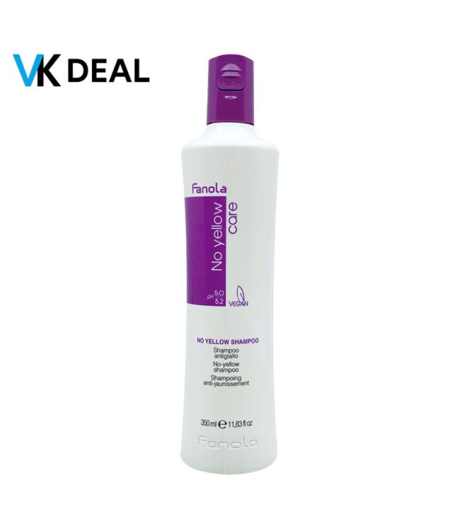 Fanola No Yellow Shampoo 350ml is een zilvershampoo speciaal voor geblondeerd haar, haar met highlights en blond of grijs haar. De paarse pigmenten in deze anti-yellow shampoo neutraliseren ongewenste gele tinten. Gele tinten kunnen ontstaan na het kleuren van het haar en dit kan diverse oorzaken hebben, bijvoorbeeld als jouw haar van nature of door eerdere verfbeurten veel warm pigment, zoals rood en oranje, bevat. Fanola No Yellow shampoo zorgt ervoor dat tinten zoals ijs, as, grijs en blond langer behouden blijven. De bestselling No Yellow Shampoo van Fanola neutraliseert ongewenste warmte in het haar, waardoor koele, zilverachtige tinten worden benadrukt en het haar een frisse uitstraling krijgt.