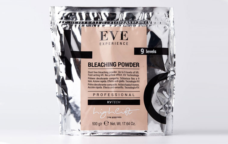 FarmaVita EVE Experience Bleaching Powder is een sterke, stuifvrije blondeerpoeder die tot wel 9 tinten kan oplichten. De innovatieve formule houdt ammoniak vast en geeft deze geleidelijk vrij, waardoor een hoge lift met een lager ammoniakpercentage kan worden bereikt in vergelijking met andere klassieke blondeerpoeders. Dit zorgt voor een comfortabele ervaring voor de klant en de stylist en vermindert de ongewenste ammoniak geur. Verrijkt met KV-technologie (Vegetal Keratin), zorgt EVE-blondeerpoeder voor maximale lift zonder concessies te doen aan de haarkwaliteit