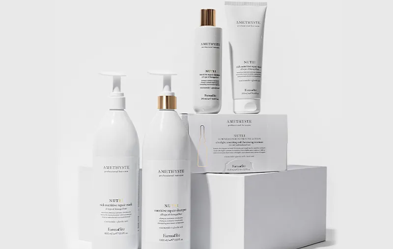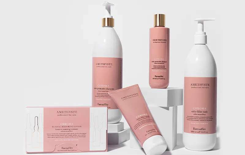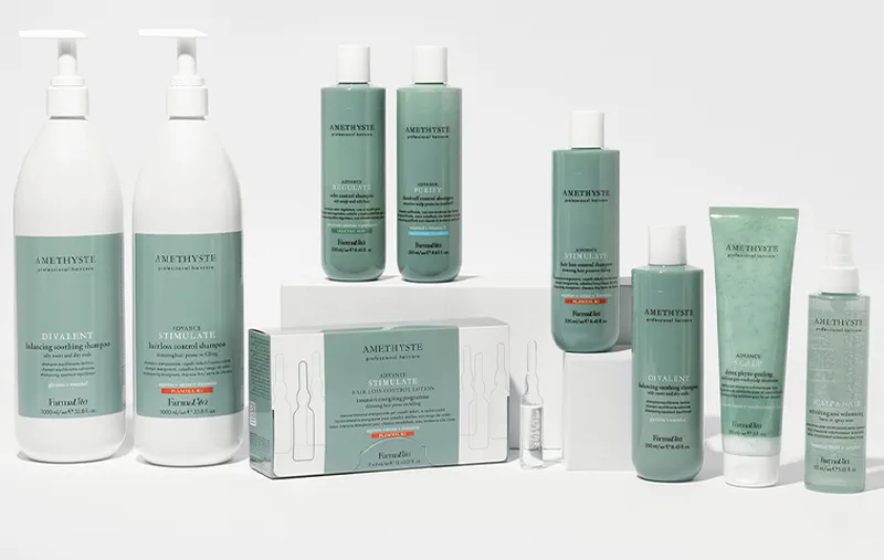 FarmaVita Amethyste is een professionele haarverzorgingslijn, speciaal geformuleerd voor ieder haartype, iedere haarkleur en ieder haarprobleem. Met deze producten kan je als kapper de perfecte in-salon behandeling selecteren voor ieder haartype en advies geven over een persoonlijk haarverzorgingsritueel voor thuis. De producten hebben skincare-inspired formules met innovatieve, rijke en actieve ingrediënten, geweldige texturen en verfijnde geuren. Alle producten zijn vegan en bevatten 85-99% ingrediënten van natuurlijke oorsprong. Daarnaast staan de prachtige verpakkingen ook mooi in iedere badkamer of salon.