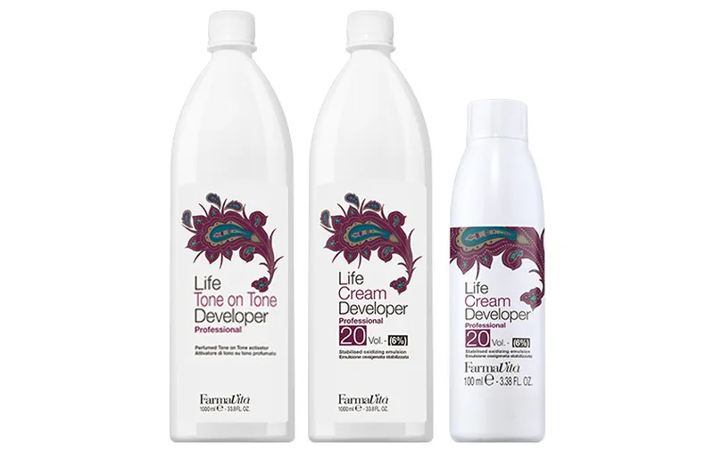 De Cream Developers van FarmaVita Life hebben een romige crème textuur en gaan perfect samen met de Life Color Plus kleuren en blondeerpoeder. De Cream Developers activeren de Excelsa HP Technologie voor prachtige en nauwkeurige kleurresultaten. De Cream Developers van Life zijn 10 VOL (3%), 20 VOL (6%), 30 VOL (9%) en 40 VOL (12%). Daarnaast zit er ook een Tone on Tone Developer van 1,5% in het assortiment. Met verschillende mengverhoudingen en alle kleuropties van FarmaVita Life Color Plus zijn de mogelijkheden eindeloos. Bekijk onderstaande mixing-ratios als handleiding en laat je inspireren door de mogelijkheden!