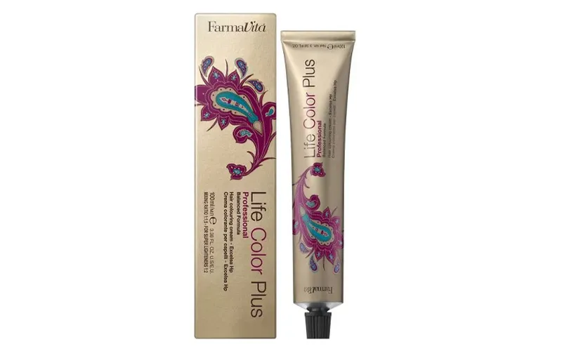 Life Color Plus by FarmaVita is een professionele, permanente haarkleuring. De formule is verrijkt met EXCELSA HP Technology om de beste verzorging te bieden tijdens het kleuren. De technologie herstelt water, proteïne en lipiden in het haar voor maximale bescherming. Daarnaast zorgt het ook voor een betere doordringbaarheid van de kleur met als resultaat een diepe, langdurige kleur met 100% grijsdekking.
