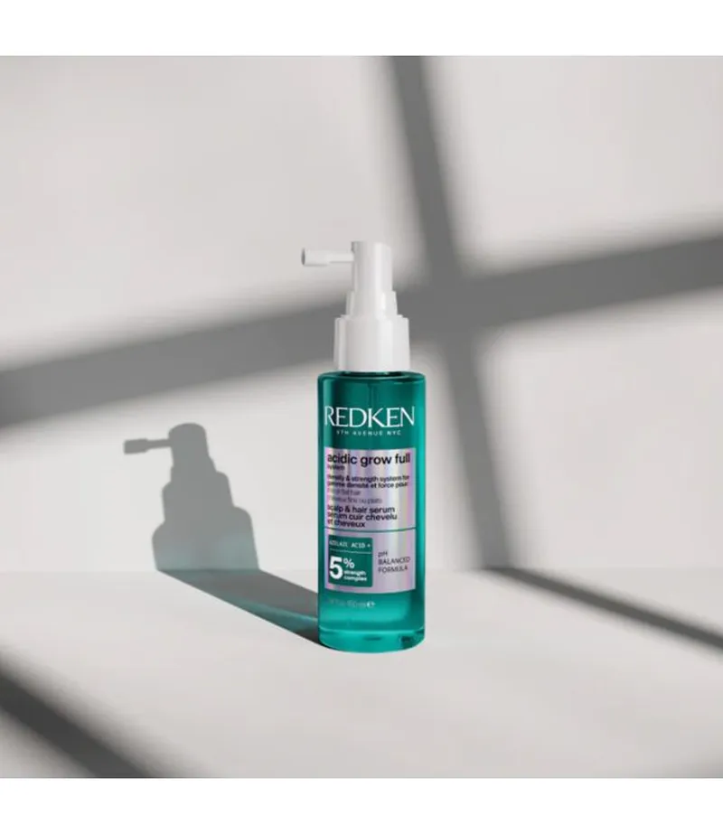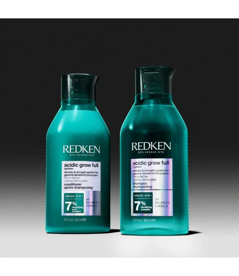 De Redken Acidic Grow Full lijn is ontwikkeld als een complete haarverzorgingsroutine voor dunner wordend, fijn of verzwakt haar dat zichtbaar meer volume, kracht en dichtheid nodig heeft. Dankzij de geavanceerde, pH-gebalanceerde formules helpt deze lijn haarbreuk te verminderen en ondersteunt het een gezonde haargroei, waardoor het haar voller en sterker oogt van aanzet tot punt. Het resultaat is haar dat meer body, veerkracht en een gezondere uitstraling heeft.