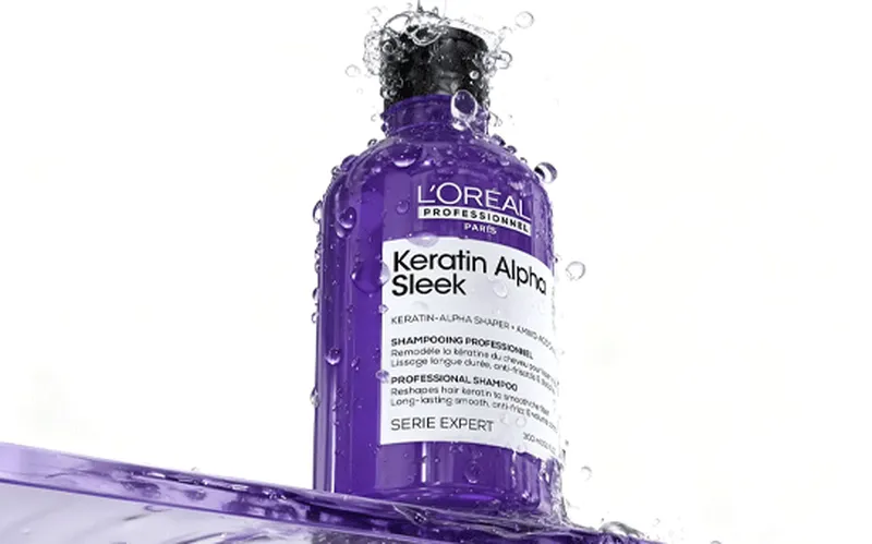 De L’Oréal Serie Expert Keratin Alpha Sleek lijn is ontwikkeld voor pluis controle en een langdurig glad, glanzend resultaat. Dankzij de innovatieve Alpha Sleek technologie, verrijkt met keratine en aminozuren, wordt de haarstructuur van binnenuit versterkt en zichtbaar egaler gemaakt. Het haar voelt veerkrachtiger aan, krijgt een gezonde glans en blijft beter in model bij hoge luchtvochtigheid. De Keratin Alpha Sleek lijn bestaat uit een complete routine met shampoo, treatment, masker en een beschermend serum. Samen zorgen deze producten voor een intensieve verzorging en maken ze het haar makkelijker te stylen, terwijl het beschermd blijft tegen hitte en andere invloeden zoals luchtvochtigheid.