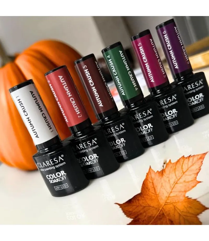 Geef je nagels een herfstige make-over met kleuren zoals dieprood, kastanjebruin, aubergine of groen. Deze tinten passen perfect bij het seizoen en geven je een stijlvolle look. Deze kleuren vind je allemaal in de Claresa Autumn Crush collectie.