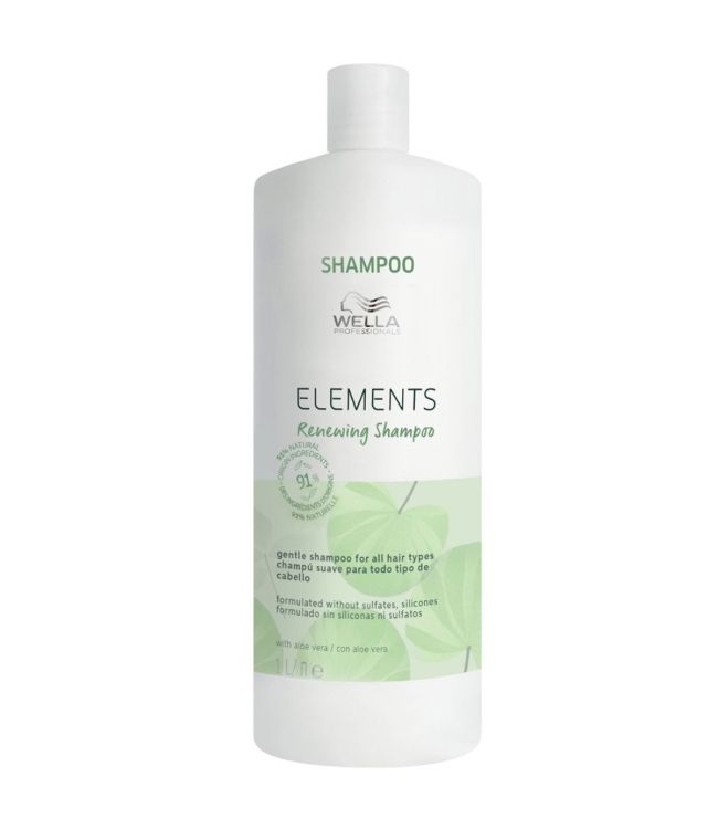 De producten van Wella Elements bestaan voornamelijk uit natuurlijke ingrediënten en zijn ontworpen met aandacht voor het milieu. De Elements Renewing shampoo bevat 91% ingrediënten van natuurlijke oorsprong. Elements is de meest milde haarverzorgingslijn voor gezond aanvoelend haar & hoofdhuid. De producten zijn ontworpen zonder siliconen, sulfaten of dierlijke ingrediënten en komen in een verantwoorde verpakking.