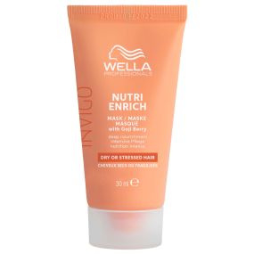 Wella Invigo Nutri Enrich Shampoo 50ml is een intensief voedende shampoo voor droog en/of gestrest haar. De Deep Nourishing Shampoo geeft het haar een boost van vitaliteit met het Nutri Enrich Complex. De professionele formule is ontwikkeld om droog en beschadigd haar te voeden en weer glad en vitaal te maken. Het Nutri Enrich Complex bevat Oleic Acid en Panthenol om het haar te hydrateren. Vitamine E beschermt tegen externe stress factoren. Daarnaast is de formule verrijkt met Goji-bessen die bekend staan om hun rijke vitamines, mineralen en peptiden. Wella Nutri Enrich verzorgt het droge en beschadigde haar intensief. Het resultaat is zacht en glad haar dat er weer gezond uit ziet. De shampoo reinigt het haar op milde wijze van overtollig talg en geeft een vitaliteit boost! Deze handige mini verpakking van 50ml is ideaal om de shampoo uit te proberen of om hem mee te nemen in de handbagage op reis.