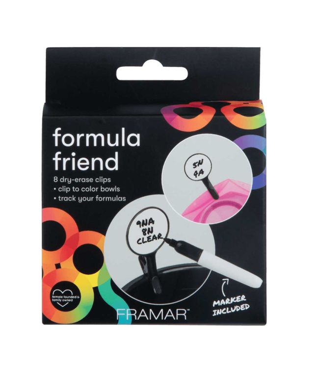 Framar Formula Friend Bowl Clips 8st. zijn handige vergeet-me-niet clips voor salon formules. Ben jij het zat om steeds te vergeten welk mengel je ook alweer in welk bakje had zitten? Klaar met post-its en andere tijdelijke oplossingen? Dan zijn de Formula Friend Clips echt iets voor jou! Deze clips zijn ontworpen in samenwerking met Amanda Miles (IG @levelupbeautyxo). De clips zijn klein, maar toegankelijk om verschillende formules op te schrijven. Met de bijgeleverde markeerstift schrijf je eenvoudig jouw formule op het whiteboard materiaal van de clip en bevestig je deze aan het corresponderende verfbakje. Door te vegen verwijder je de geschreven formule en kun je weer iets nieuws noteren. De Formula Friend Clips zorgen voor ultiem gebruiksgemak in de salon.