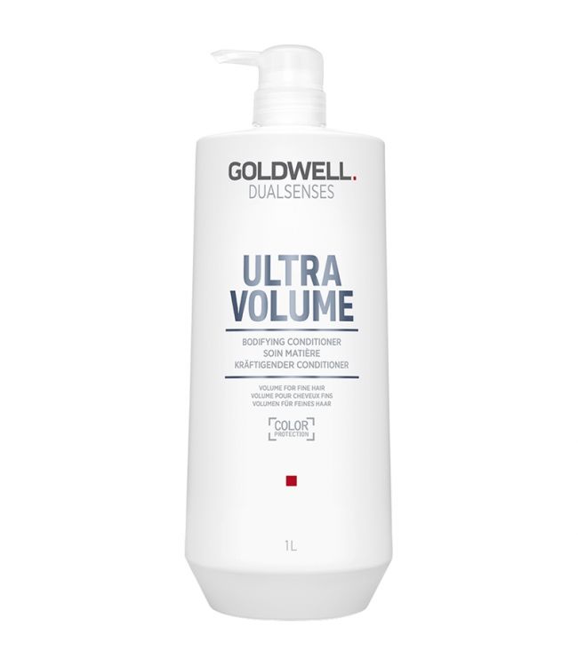 Goldwell Dualsenses Ultra Volume Conditioner 1000ml is een volume conditioner met mulit-mineralen voor direct zichtbaar en voelbaar meer volume. De ultralichte geltextuur van de conditioner zorgt voor milde verzorging en versteviging. Ook verbeterd de conditioner de doorkambaarheid van het haar. Goldwell Dualsenses Ultra Volume Conditioner bevat Fade Stop Formula wat kleurverlies reduceert tot een minimum. De conditioner bevat rijst proteine en multimineralen die het volume versterken en is vooral geschikt voor fijn tot normaal slap haar wat een volumeboost kan gebruiken. Rijst proteine is bekend om zijn versterkende werking, en zichtbaar en tastbaar volume voor fijn en futloos haar.