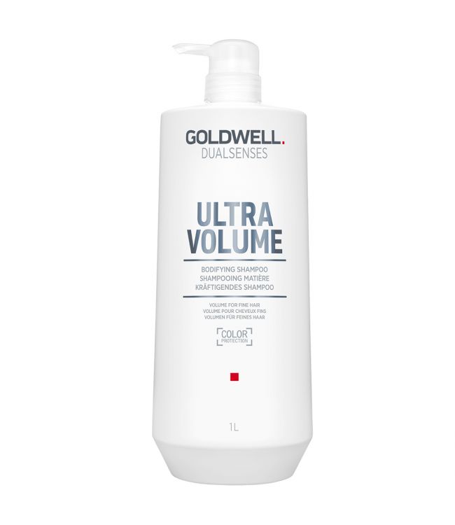 Goldwell Dualsenses Ultra Volume Shampoo 1000ml is een volumeshampoo met mulit-mineralen voor direct zichtbaar en voelbaar meer volume. De ultralichte geltextuur van de shampoo zorgt voor milde reiniging en versteviging. Goldwell Dualsenses Ultra Volume Shampoo bevat Fade Stop Formula wat kleurverlies reduceert tot een minimum. De shampoo bevat rijst proteine en multimineralen die het volume versterken en is vooral geschikt voor fijn tot normaal slap haar wat een volumeboost kan gebruiken. Rijst proteine is bekend om zijn versterkende werking, en zichtbaar en tastbaar volume voor fijn en futloos haar.