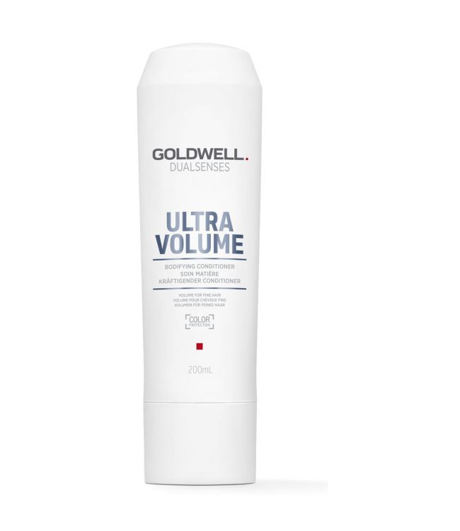 Goldwell Dualsenses Ultra Volume Conditioner 200ml is een volume conditioner met mulit-mineralen voor direct zichtbaar en voelbaar meer volume. De ultralichte geltextuur van de conditioner zorgt voor milde verzorging en versteviging. Ook verbeterd de conditioner de doorkambaarheid van het haar. Goldwell Dualsenses Ultra Volume Conditioner bevat Fade Stop Formula wat kleurverlies reduceert tot een minimum. De conditioner bevat rijst proteine en multimineralen die het volume versterken en is vooral geschikt voor fijn tot normaal slap haar wat een volumeboost kan gebruiken. Rijst proteine is bekend om zijn versterkende werking, en zichtbaar en tastbaar volume voor fijn en futloos haar.