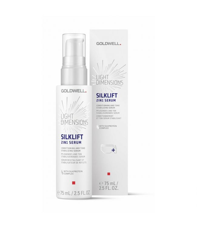 Goldwell Silk Lift Light Dimensions 2 in 1 Serum 75ml is een intensief conditionerend serum met toonstabilisatie, voor de meest intensieve verzorging die het haar kan krijgen tijdens het blonderen. Goldwell Silk Lift Serum zorgt voor gezond ogend haar met uitstekende duurzaamheid en langdurige glans. Meer Lezen