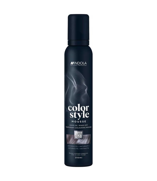 De mousse heeft zeer veelzijdige toepassingen als leave-in of als rinse-off. Als leave-in styling mousse blijven de resultaten tot 4 wasbeurten zichtbaar. Als rinse-off tint of toner blijven de kleuren afhankelijk van de intensiteit van de kleur tussen de 4 tot 20 wasbeurten zitten. De kleur Anthracite blijft gemiddeld 10 wasbeurten zichtbaar. Het Color Style Mousse assortiment sluit perfect aan bij de PCC kleuringen van Indola en versterkt kleuren van Blonde Expert. Anthracite frist de haarkleuren .1 en .11 op, zodat je thuis de salonlook kunt verlengen. De kleur Antraciet is een donkere en houtskoolgrijze tint met de kracht van diepe elegantie of een verfijnd peper-en-zout effect. Daarnaast is de kleur Antraciet ook ideaal voor het corrigeren en neutraliseren van ongewenste gele of oranje tonen. De Color Style Mousse kleuren zijn onderling mengbaar om oneindig veel kleurmogelijkheden te creëren van naturel tot pastel of intens.