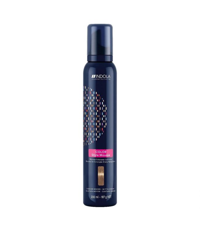 Indola Color Style Mousse Midden Bruin 200ml is een handige mousse waarmee je het haar kunt kleuren en stylen in één. De gebruiksklare Color Mousse is een leave-in kleurschuim die direct zichtbare resultaten geeft en uitwasbaar is. Dit maakt de mousse ideaal voor tijdelijke kleuringen, voorpigmentatie, om de haarkleur op te frissen tussen salonbezoek door en nog veel meer! De vernieuwde formule van de Color Style Mousse heeft een iets lagere, zachte en natuurlijke hold waarmee de beweging in het haar mooi en natuurlijk blijft. De formule is non-sticky, mild en 100% veganistisch. Door de toevoeging van Panthenol wordt het haar beschermt tegen hitte van de föhn en blijft het zacht en verzorgd aanvoelen.