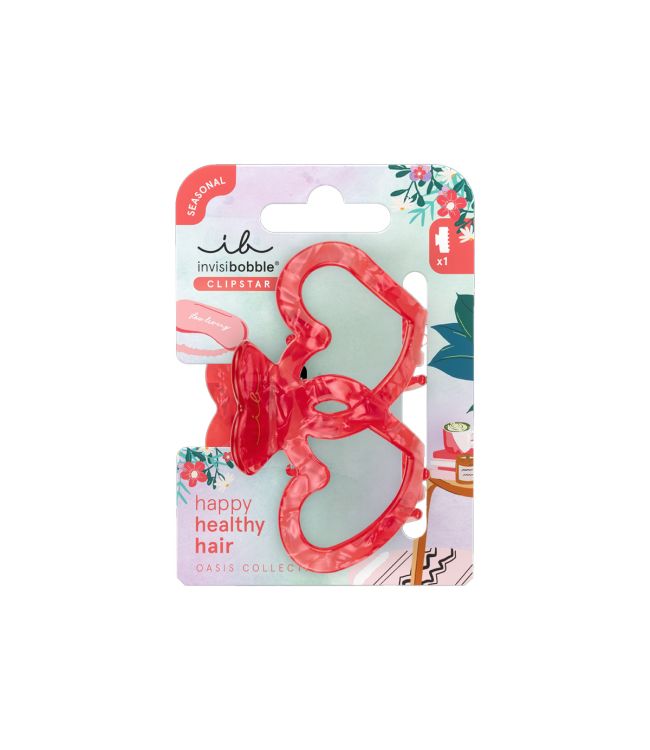 Invisibobble Clipstar Oasis Lovers Nest is een trendy, elegante, hartvormige haarklem in een rode kleur met hartjes design. Deze stijlvolle klem is jouw nieuwe go-to! Dit speelse design geeft elke haarstyle een classy, romantische finishing touch. Of je nu gaat voor een klassieke french twist, een half-updo of om losse plukjes uit je gezicht te halen. De Clipstar Oasis Lovers Nest is perfect voor elke gelegenheid. Het vrolijke design maakt jouw oufit helemaal af. Het grote formaat claw clip is perfect voor alle haartypes, ook als je dikker of weerbarstiger haar hebt.