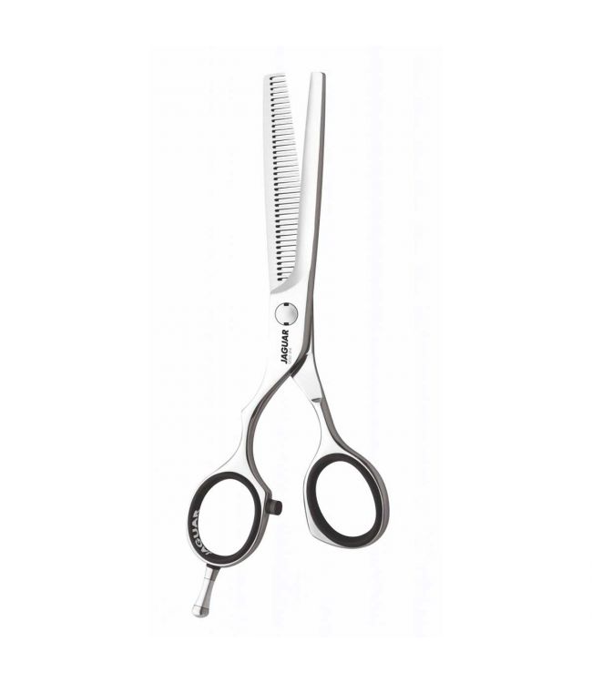 Jaguar Solingen Diamond E 39 Left Effileerschaar 5.25 is een professionele, linkshandige kappersschaar met 39 effileertanden. De premium effileerschaar heeft 39 gebogen uitdun tanden met fijne v-tand vertanding. Daarnaast heeft de schaar een zeer scherpe snijhoek voor precieze sneden. Het hol geslepen mes zorgt voor een bijzonder zacht knipgevoel, wat perfect is voor dagelijks veelvuldig ggebruik. De Diamond E 39 komt uit de GOLD LINE van Jaguar en wordt gesmeed met premium staal. Het speciale ijshardingsproces maakt het mes harder en het staal extreem resistent. Hierdoor blijft de scherpte lang en heb je veel profijt van deze professionele effileerschaar. Het glanzende oppervlak is met de hand gepolijst voor een tijdloze en hoogwaardige uitstraling.