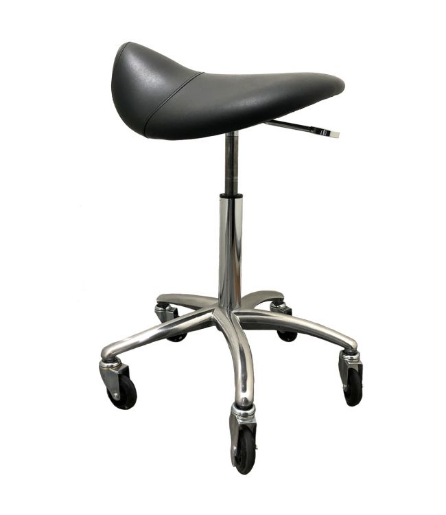Kappersfiets Pony Saddle XXL Met Skeelerwieltjes is een kappersfiets die door het extra grote zadel erg comfortabel is. Deze kappersfiets is de eerste fiets die 100% onderhoudsvrij is. De Kappersfiets Pony Saddle XXL is in hoogte verstelbaar. Deze kappersfiets heeft een stervormige sokkel die 5 uiteinden bevat en is gemaakt van hoogwaardig aluminium, hierdoor heeft de kappersfiets een zeer sterke fundering. De kappersfiets is geschikt voor een lichaamsgewicht t/m 150kg.