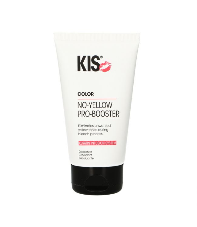 KIS No Yellow Booster neutraliseert gele ondertonen tijdens het blonderen. Kis No Yellow Booster is het ideale product om als professional sneller en vakkundiger te werken. Het krachtige blauwpigment in de booster elimineert in één stap iedere ongewenste geelnuance tijdens het blondeerproces. Gebruik Kis Anti-Yellow Pro Booster volgens onderstaand schema. Voeg het juiste percentage toe aan de blondeermassa en gebruik nooit meer dan 5%. KIS No Yellow Booster is niet geschikt voor grijs haar.