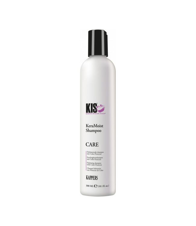Kis KeraMoist Shampoo 300ml is een vochtbindende shampoo voor gepermanent, gekleurd en droog haar. Deze shampoo zorgt voor een milde reiniging en brengt vocht in. De KeraMoist sluit de cuticula goed af en zorgt voor behoud van de kleur van het haar. Kis KeraMoist maakt het haar zacht en handelbaar en is super hydraterend. De shampoo is sulfaat- en parabeenvrij en heeft een pH-waarde van 5.0 - 5.5.