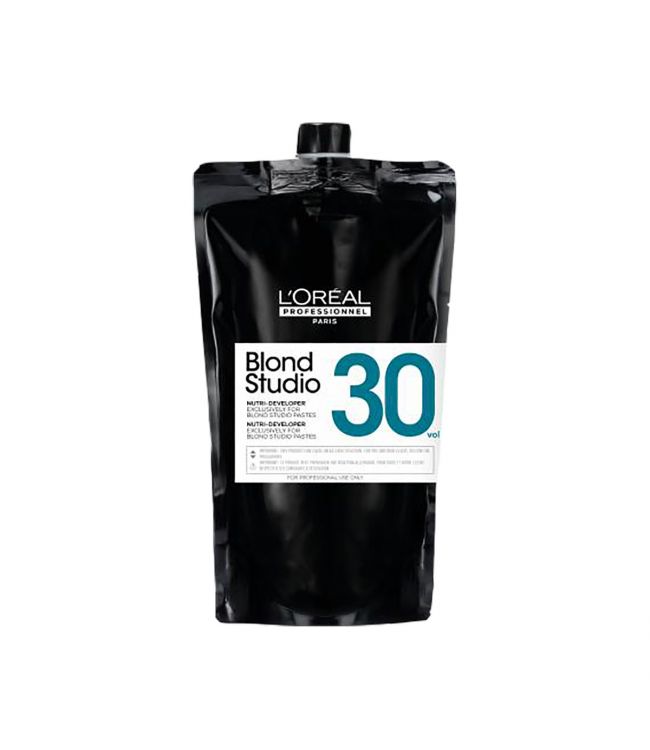 L'Oréal Professionel Blond Studio Nutri ontwikkelaar 9% (30 vol) 1000ml is een ontwikkelaar speciaal voor de Blond Studio Platinum pasta's. De ontwikkelaar zorgt voor een soepel, romig mengsel zodat het haar optimaal kan kleuren. Deze L'Oréal ontwikkelaar heeft een percentage van 9% of ook genoemd 30 VOL. en is specifiek gemaakt om optimaal te werken met alle L'Oréal haarverf. De formule is verrijkt met essentiële ingrediënten zoals polymeren, die de haarvezel voeden en verzorgen. Daarnaast geeft L'Oréal Professionel Blond Studio Nutri ontwikkelaar het haar een lipidencoating, zodat het lipidenhalte in het haar hetzelfde blijft tijdens het verven en het haar op en top verzorgt is. Verder is deze ontwikkelaar verkrijgbaar in 2 andere soorten.