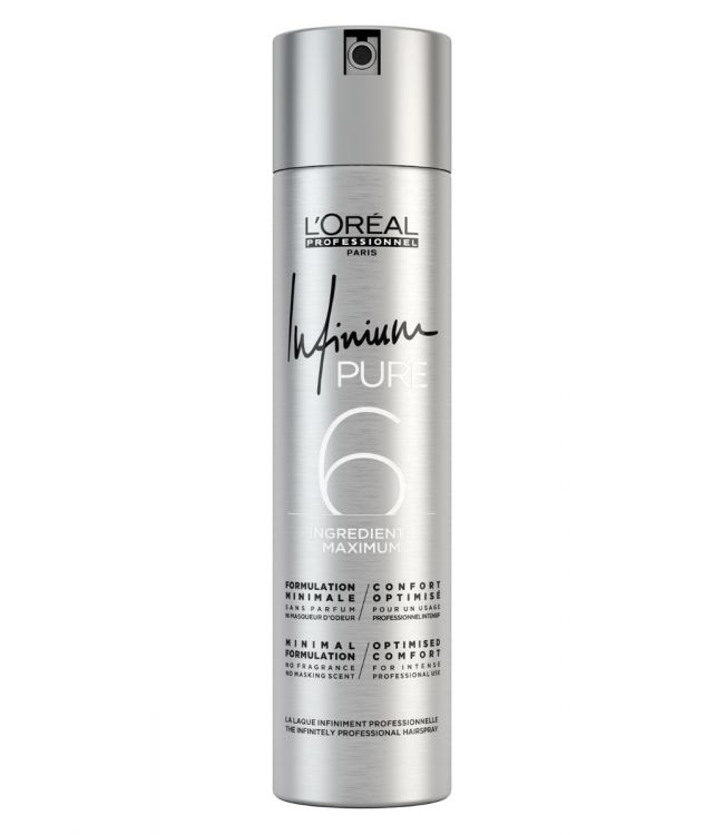 L'Oréal Infinium Pure Strong 300ml is een hypoallergene, fijne haarspray. De professionele formule minimaliseert het risico op een allergische reactie. De ultra fijne en extra droge haarspray zorgt voor sterkte fixatie, zonder stijf te worden. L'Oréal Infinium Pure Strong is parfumvrij en laat geen geur achter in het haar of in de salon. De spray laat geen residu achter in het haar, droogt onmiddellijk en geeft het haar een mooie glans. De haarspray is geschikt voor alle haartypes.