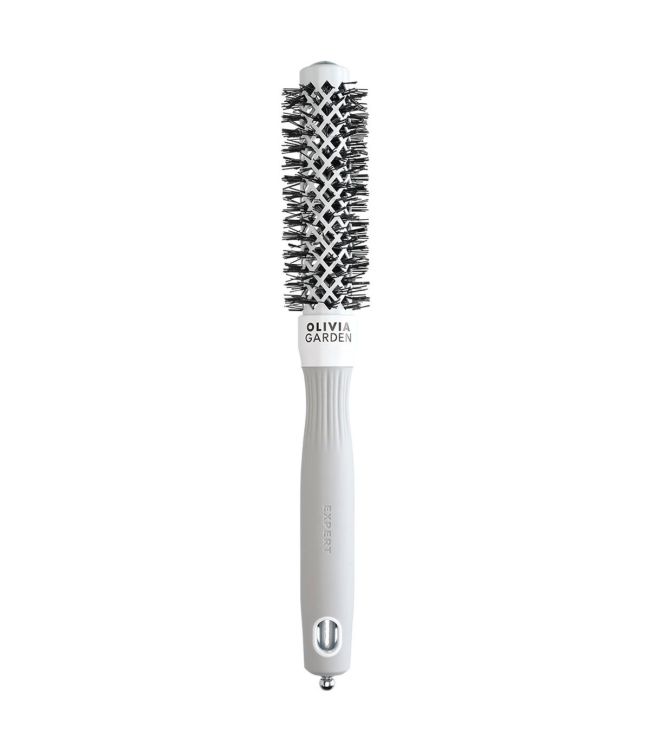De keramische coating van de borstel zorgt voor een snellere verwarming en de ventilatie gaten versnellen het droogproces van de haren. De NanoThermic-technologie helpt statische elektriciteit uit het haar te verwijderen en heeft een extra antibacterieel effect. De ionische borstelharen houden het haar gezond en stralend. Olivia Garden Expert Blowout Shine ronde borstels zijn ideaal voor het creëren van perfecte blowout looks met volume. De borstel is bestand tegen hitte tot 230 graden. Het handvat is ergonomisch, lichtgewicht én er zit een handige verdeelpunt in verwerkt voor het maken van secties. De wit met grijze kleuren staan tijdloos en modern in de salon.