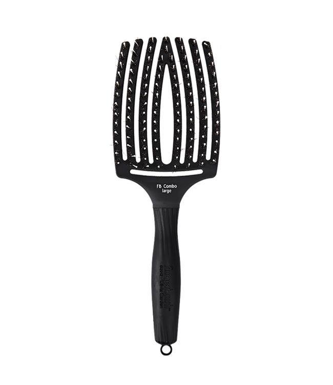 Olivia Garden Borstel Fingerbrush Combo Large is een anti-statische en geïoniseerde borstel met een combinatie van zwijnen en nylon haren. Deze borstel is goed voor het ontwarren en stylen van het haar, het super snel drogen en dagelijks borstelen. Het ergonomische handvat is licht en ideaal voor een ontspannen styling. De gebogen peddel met zachte balpunttips omhelst de hoofdhuid en de grote luchtgaten voorkomen dat het haar oververhit en uitgedroogd raken. Het verdeelpunt op het einde van het handvat is perfect om het haar te verdelen in secties.