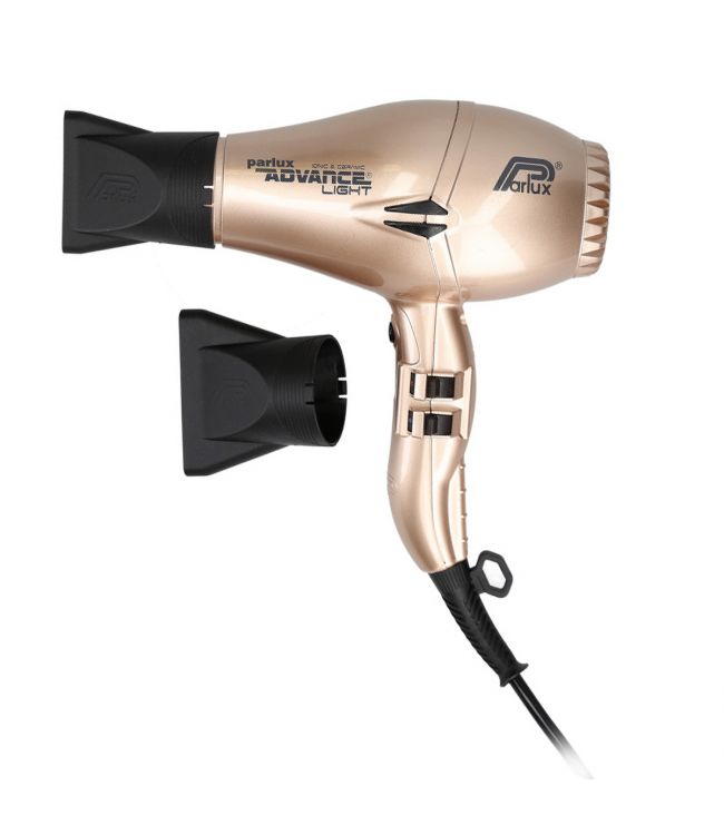 Parlux Advance Light Föhn Goud is een ionisch en keramische fohn met de inovatieve K-advance motor. Parlux Advance Light is een lichtgewicht föhn en maakt minder geluid dankzij de ingebouwde geluidsdemper. Deze föhn heeft 4 warmtestanden die op twee standen gereguleerd kunnen worden. De cold-shot functie zorgt ervoor dat de föhn met 1 druk op de knop omschakelt van warme naar koude lucht. Parlux Advance Light heeft een vermogen van 2200 watt, dit zorgt voor een krachtige blaaskracht die het haar binnen no-time droogt.