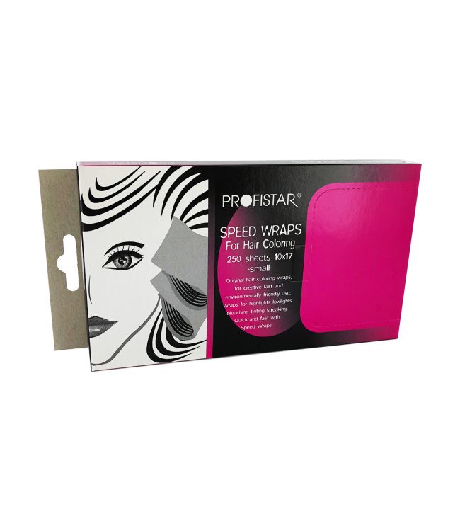 Profistar Hi Lite Speedwraps 10x17cm 250st. is een stuk meche gemaakt van speciaal behandeld papier en geschikt voor alle kleurtechnieken. Deze speedwraps zijn zeer licht in het haar, dus zeer comfortabel voor de klant. Dit papier is geplastificeerd en geisoleerd. De speedwraps zijn verkrijgbaar in de maten 10x17cm, 10x25cm en 10x40cm. De verpakking bevat 250 vellen papier.