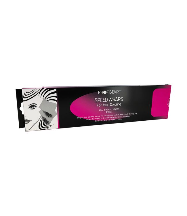 Profistar Hi Lite Speedwraps 10x40cm 250st. is een stuk meche gemaakt van speciaal behandeld papier en geschikt voor alle kleurtechnieken. Deze speedwraps zijn zeer licht in het haar, dus zeer comfortabel voor de klant. Dit papier is geplastificeerd en geisoleerd. De speedwraps zijn verkrijgbaar in de maten 10x17cm, 10x25cm en 10x40cm. De verpakking bevat 250 vellen papier.