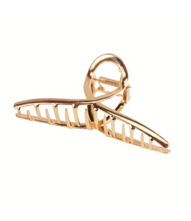Solida Claw Clip Gold Metal Swirl 11cm is een goud metalen haarclip met een minimalistisch design. De clip is stevig en blijft goed in het haar zitten. De swirl geeft een classy touch aan een french twist, knot of andere updo. Meer Lezen