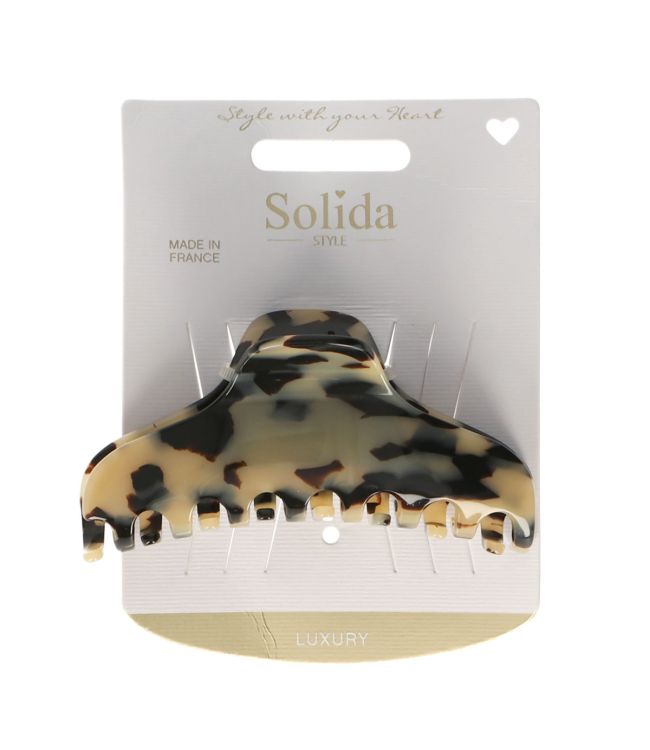 Solida Clip Cream Leo Large is een grote haarklem met een unieke print. De klem heeft zwarte en crème kleurige spikkels in een patroon geïnspireerd op de luipaard. De klem staat prachtig bij iedere outfit. Meer Lezen