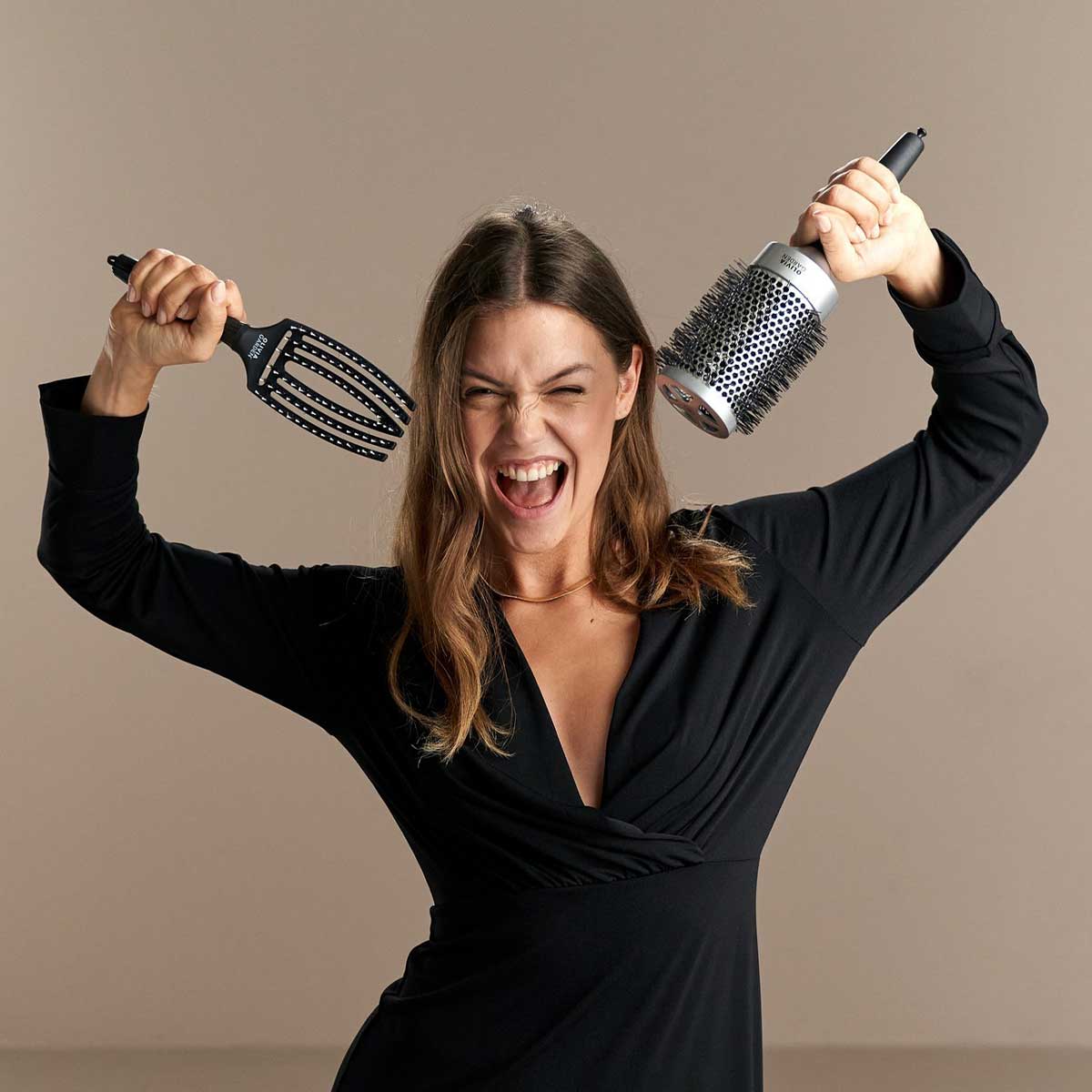 Of het nu gaat om föhnen, stylen of het ontwarren van haar: de juiste borstel of kam maakt elke behandeling nog makkelijker. In ons assortiment vind je alles van klassieke kapperskammen tot professionele föhnborstels die het haar soepel en glanzend maken. Van de populaire Olivia Garden Fingerbrush tot luxe haarborstels met boar bristles van Mason Pearson en flexibele kammen van Curve-O: je vindt het bij Voorkappers!