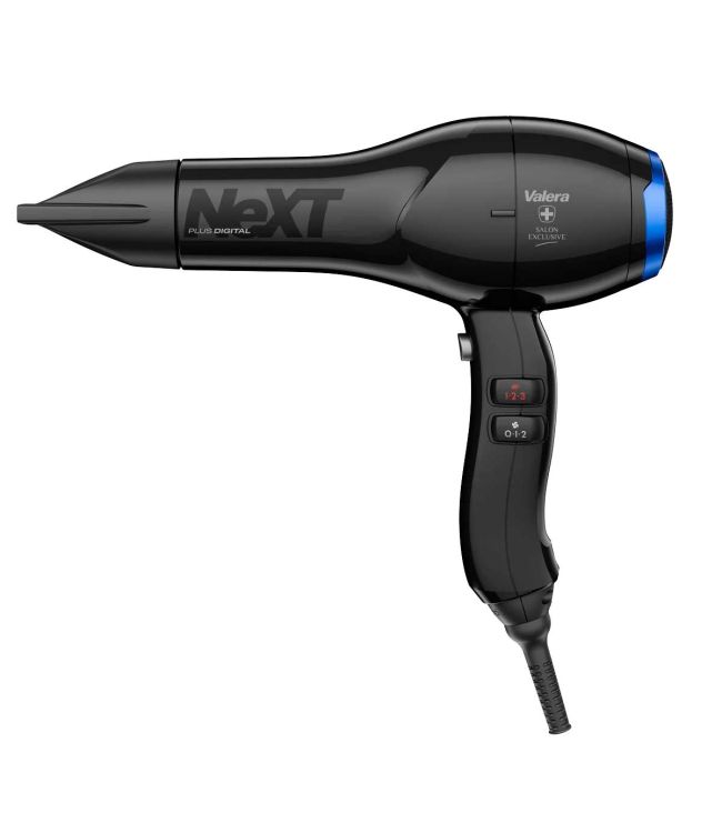 De föhn heeft 6 temperatuur- en snelheid combinaties en is voorzien van een Cool-Shot button om de haarstyle te fixeren. Het metalen filter is verwijderbaar om gemakkelijk te reinigen en voorzien van een Sanify System om de lucht te zuiveren. De Next Plus Digital heeft een blauw detail op het filter. Zo is de Digital föhn gemakkelijk te herkennen tussen de andere Valera Salon Exclusive Next Plus haardrogers. De föhn voorzien van een 360°C meedraaiend Rotocord voor ultieme bewegingsvrijheid en weegt slechts 425 gram (zonder kabel). Tot slot is de föhn ook ultra stil met slechts 70 dB.