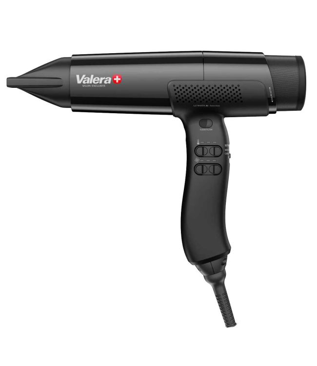 Valera Salon Exclusive Föhn Ultimate AI Night Black 2000W is de superlichte, ergonomische 'heavy duty' high-speed haardroger voor professioneel gebruik. Deze elegante, verderlichte én krachtige föhn biedt supersnelle styling op zijn best en alles wat je verlangt van een professionele haardroger! De Ultimate AI föhn heeft een veerkrachtige Digitale 120K PAX motor die prestaties naar nieuwe hoogten brengt. Met een snelheid van 118.000 tpm en een levensduur van 7.000 uur bereikt de haardroger een hoge luchtdruk en een airflow van 80m3/u. De Ultimate AI föhn is voorzien van ABT - Air Boost Technology. Deze Turbo Booster kan de kracht van de airflow versterken tot 90m3/u gedurende 2 minuten. Zo blaas je binnen no-time het haar droog!